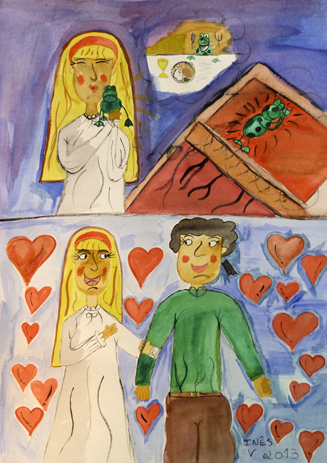 "O Príncipe Sapo", ilustrações de Inês Valente, 2013.